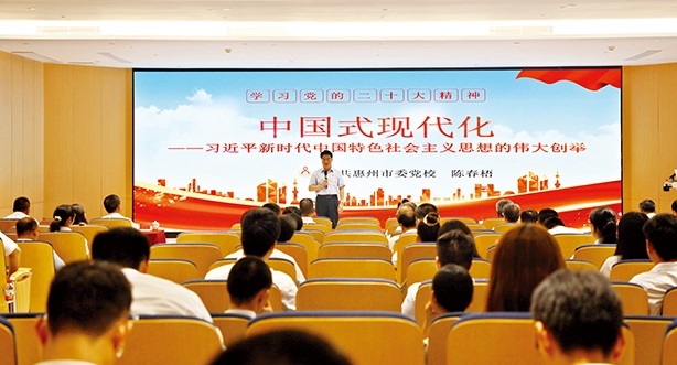 广东决议研究院陈春梧副院长围绕“学习党的二十大精神‘中国式现代化’”专题,,,对“中国式现代化”举行了周全准确、系统深入的叙述,,,加深了党员同志对党的二十大精神的明确和掌握。。。。。。。